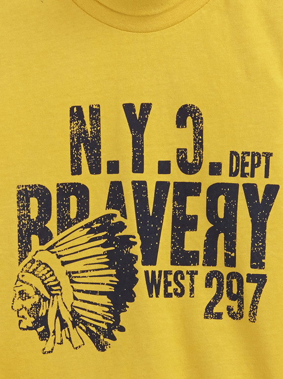 Яркая футболка фирмы t-a-o (Tape à l'oeil) Франция. Желтая, впереди рисунок. 100% хлопок. Размер 6л (116), 8л (128), 350руб