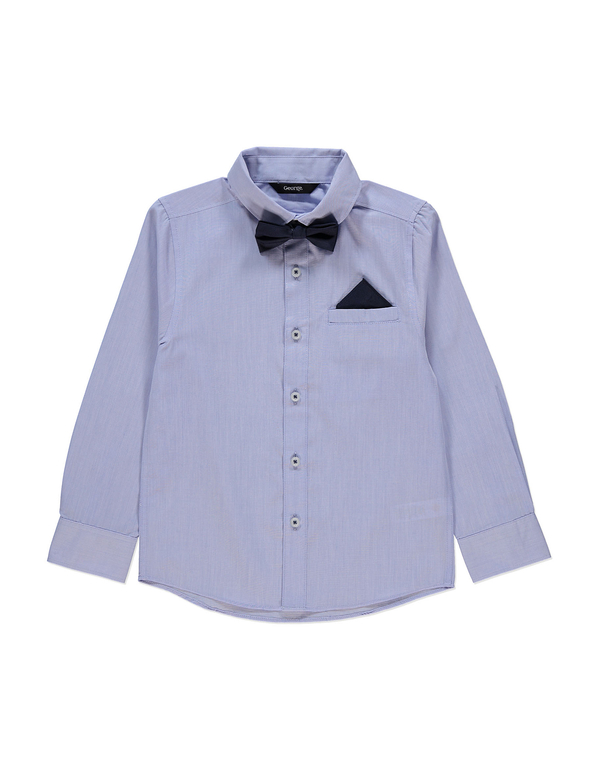 Рубашка с бабочкой George. Голубая рубашка с кармашком на груди, в кармашке платочек + бабочка темно-синяя, застегивается на липучку, снимается. Состав 35% хлопок, 65% полиэстер. Размеры 2-3г (92-98) 650руб