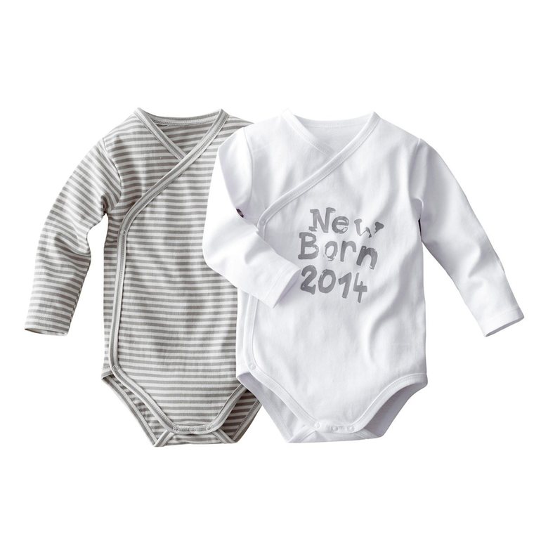 Боди с длинным рукавом фирмы La Redoute. Полностью расстегивается-застегивается на кнопках. Белое с надписью Родился в 2014г и белая -серая полоска.