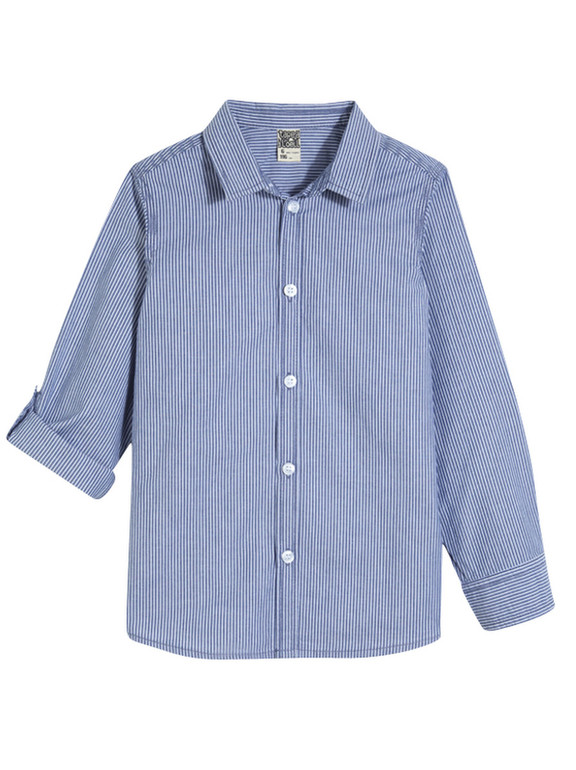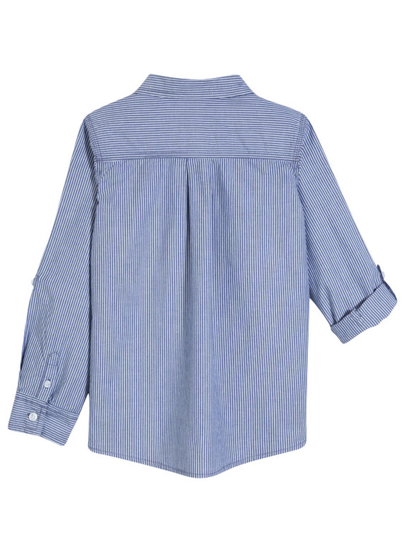 Рубашка с длинным рукавом фирмы t-a-o (Tape à l'oeil) Франция. Белая-синяя полоска, рукава фиксируются на хлястик с пуговичкой в подвернутом виде . Состав 100% хлопок. Размеры 3г(96), 4г(104), 550руб.