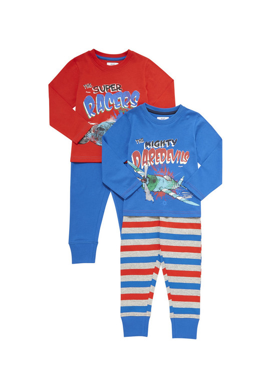 Пижама с длинным рукавом фирмы F&F. Мягкий трикотаж, Красная кофточка с самолетом и надписями + голубые штанишки и голубая кофточка с самолетом и надписями + штанишки в полоску. Штанишки внизу на резинке, состав 100% хлопок .