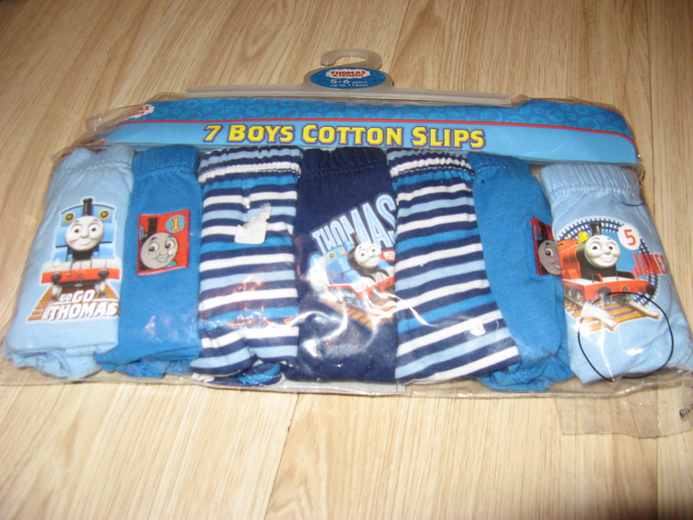 Трусы фирмы Thomas & Friends 7 штук в комплекте. Голубые, синие, в полоску с паравозиком Томасом. Состав 100% хлопок. р. 5-6л (110-116) 590руб