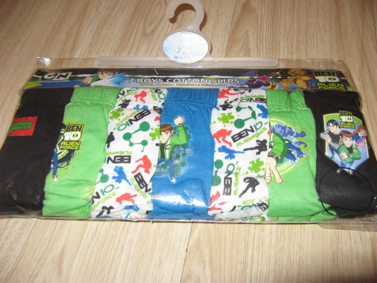 Трусы фирмы Cartoon Network 7 штук в комплекте. Cиние, зеленые, белые, черные с Ben 10: Alien Force. Состав 100% хлопок. р. 6-7л *(116-122) 550руб