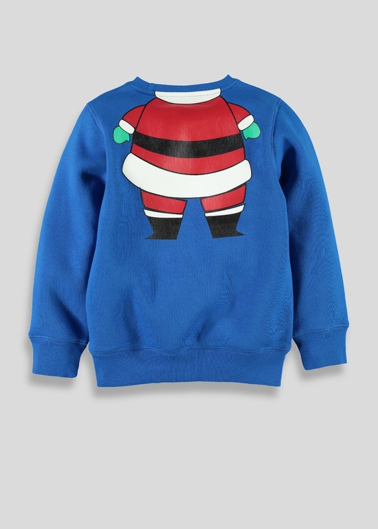 Толстовка фирмы Matalan. Синяя, внутри с начесом, на груди и спине рисунок-наклейка Санта и надписи, манжеты на рукавах. Состав 60% хлопок, 40% полиэстер. Размер 4-5л (104-110) 590руб