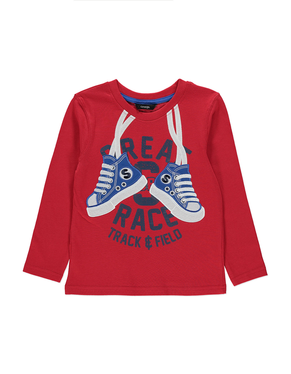 Футболка фирмы George. Красная, впереди рисунок и надпись. 100% хлопок. Размер 4-5 (110-116), 5-6л(110-116), 6-7л (116-122) 270руб