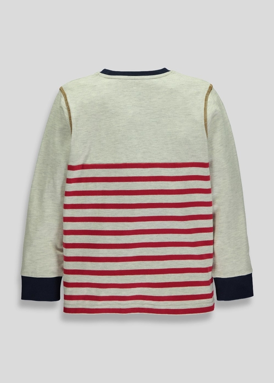 Новогодняя кофточка с эффектом 2 в 1 фирмы George. Красная, серые рукава, впереди рисунок Мангуст в шапочке. Состав 66% хлопок, 2% вискоза, 32% полиэстер. Размеры 4-5л(104-110), 5-6л (110-116), 6-7л(116-122). 300руб