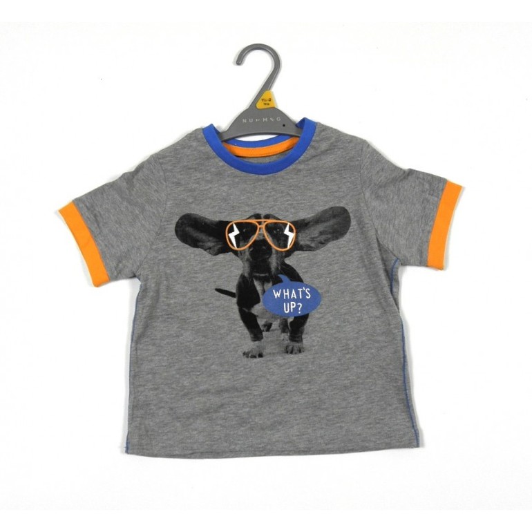 Кофточка с длинным рукавом фирмы F&F. Серая, впереди рисунок Собака на мотоцикле и надписи. Состав 100% хлопок, размер 5-6л (110-116),