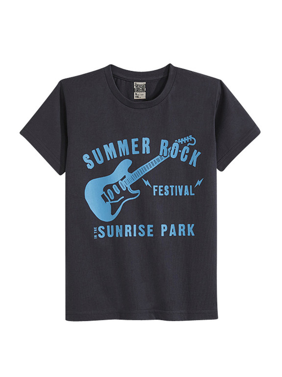 Футболка фирмы t-a-o (Tape à l'oeil) Франция. Черная, впереди рисунок гитара и надписи. 100% хлопок. Размер 8л (128), 350руб