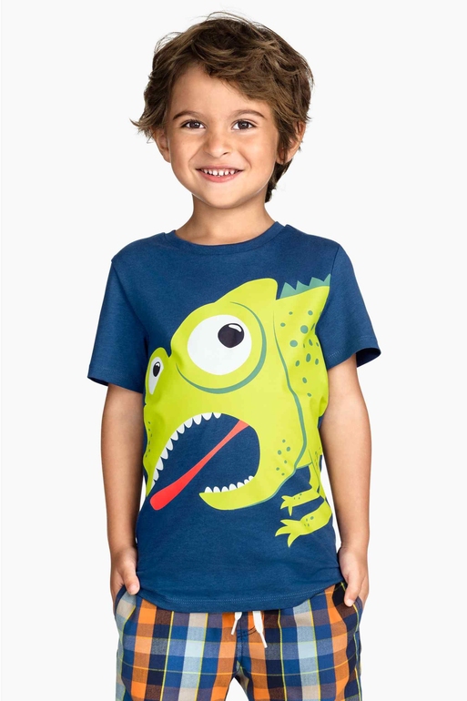 Футболка фирмы H&M. Синяя с яркими рисунком Хамелеон впереди. Состав 100% хлопок. 6-8л (122-128) 350руб.