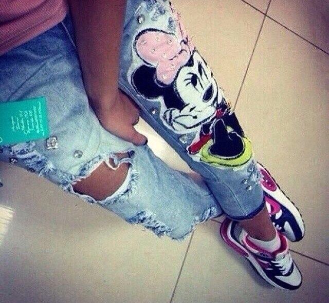 Модные рваные джинсы с Микки! Пока что в наличии все размеры от 40 до 48!