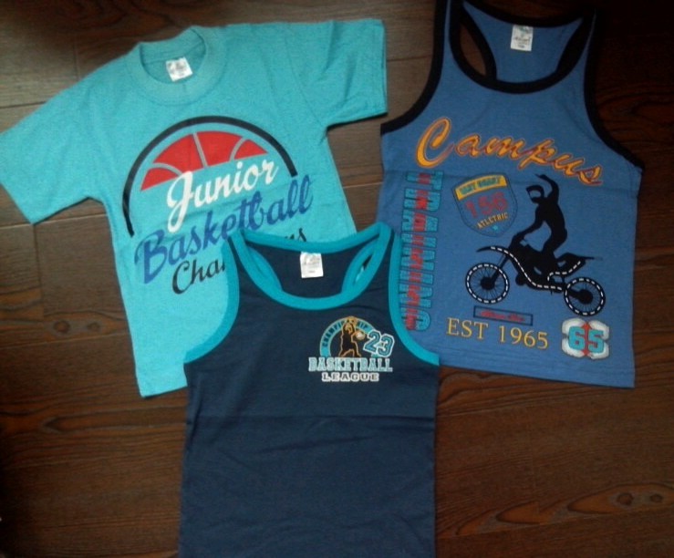 голубая футболка баскетбол р.104 длина 40 см, Ог 57 смр.110 длина 43 см, Ог 65 смр.122 длина 46 см, Ог 68 сморанжевая футболка Микки3г длина 39см, Ог 58 см1г длина 38см, Ог 53 смсиняя футболка Микки2г длина 38см, Ог 54 см1г длина 37см, Ог 53 см