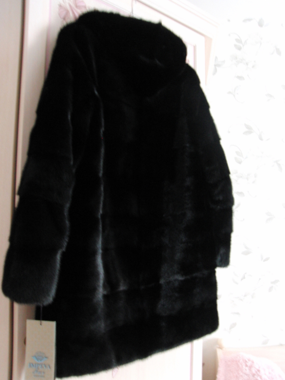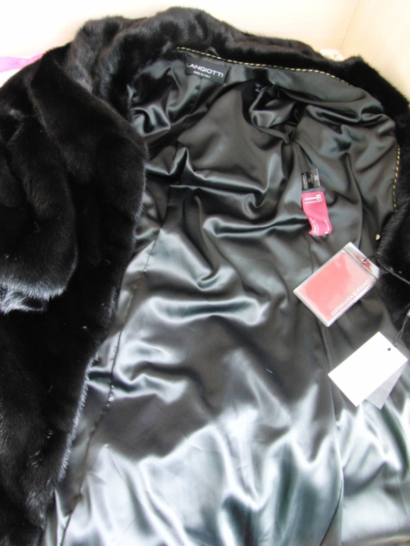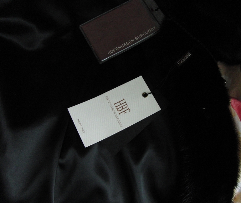 2) Новая со всеми бирками и сертификатом на пломбе норковая шуба р.42-44-46 Италия. Диагональная раскладка меха, длина 110 см, капюшон, насыщенный черный цвет, оригинальный рукав. Мех скандинавской норки Kopengagen Burgundy. Цена 75 000 руб.