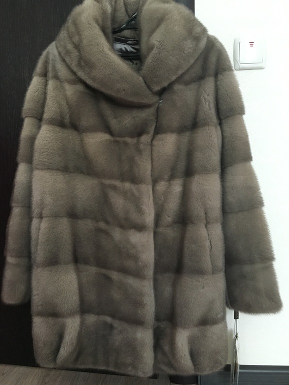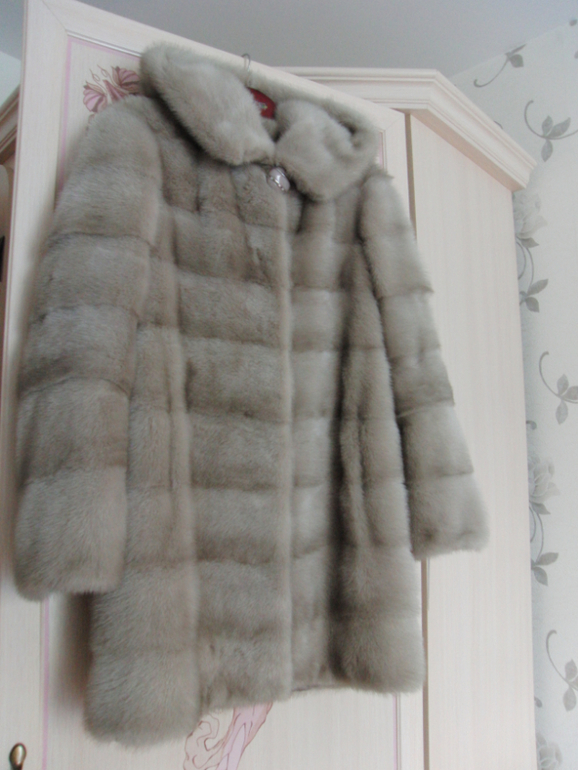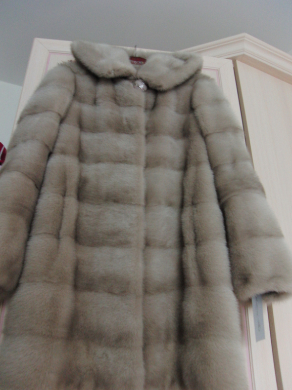 3) Новая на пломбе фабричная норковая шуба р.46-48-50. Поперечная раскладка меха, ворот стойка, роскошный серо-голубой цвет, длина 90 см, кулиска на талии, рукава отстегиваются до длины 3/4. Мех отличного качества с очень густым и плотным подпушком, скандинавская норка. Цена 75 000 руб. Продана