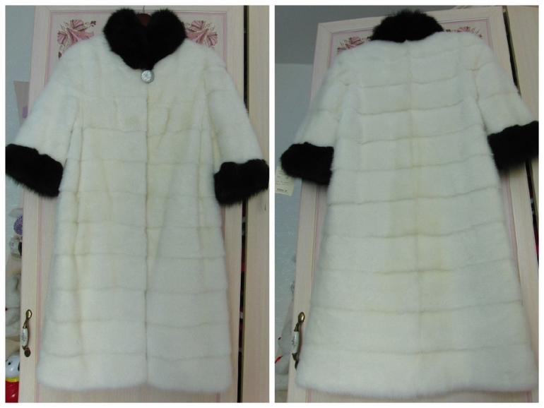 4) Абсолютно новая норковая шуба с соболем Италия. Цвет жемчуг, поперечная раскладка меха, длина по спинке 100 см, ворот и модельный рукав 3/4 отделан соболем. Размер 42-44. Мех скандинавской норки Kopengagen Burgundy - Ярлык Kopenhagen Burgundy символизирует высокое качество меха, которое отличается гармоничным сочетанием покрова остевых волос с плотным, объёмным подшерстком, прибавляющим ценность и придающим исключительную лёгкость любому изделию из этого меха. Эффектная стильная шубка! Цена 88 000 руб. Продана5) Поперечная раскладка меха, черный цвет, длина 90 см (низ отстегивается до длины 70 см), рукав также можно сделать 3/4, капюшон. Греция. Размер 46-48-50.65 000 руб.