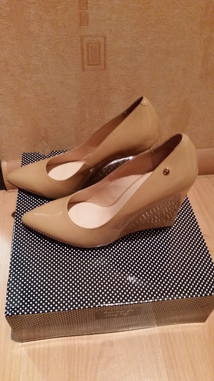 Новые туфельки. Очень красивые. На фото получились более бледные. На самом деле цвет более насыщенный, но фото этого не передало.Они более бежево - кофейные, но цвет очень теплый. Покупала за 6000р, продаю за 3500р.