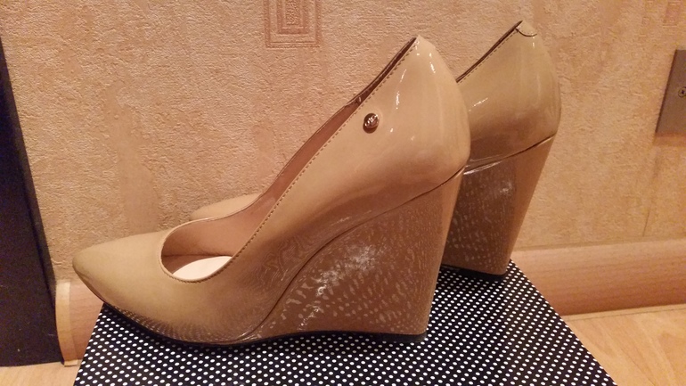 Очень красивые. Подошва красная. Необходимы набойки. Слегка потертость на мысе. Из-за недостатков 400р (покупала за 6000р)