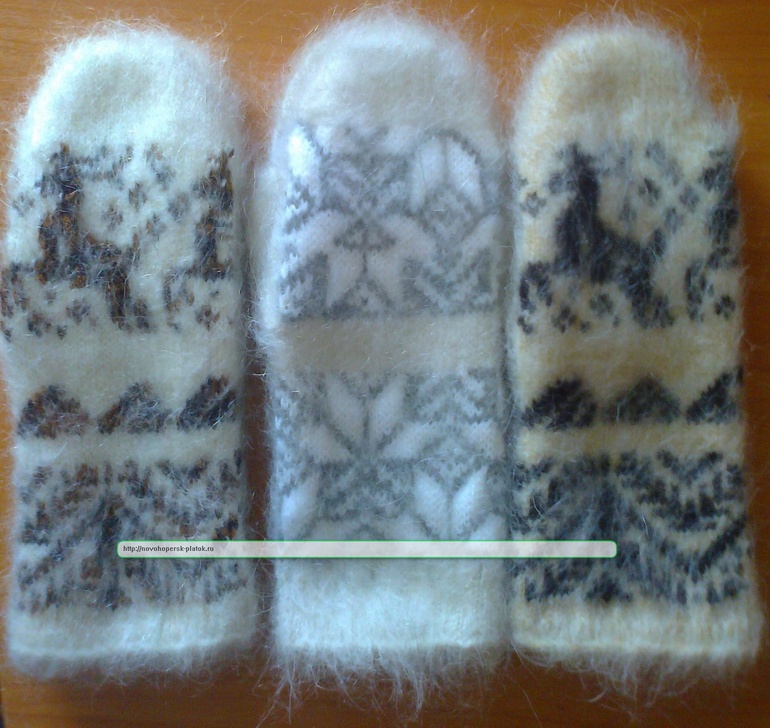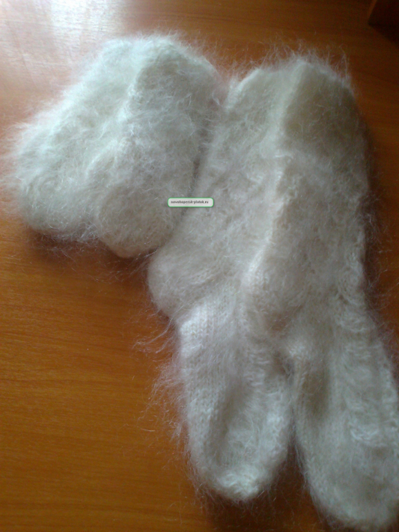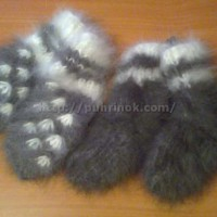 Варежки пуховые (кролик) взрослые 550 руб, детские до длины ладони 13 см- 350 руб., комплект варежки+носки (р-р носки 14, варежки 2) - 560 р, комплект варежки и шапка - 950 р.. Комплект пинетки, варежки и шапка с пелериной - 1300.
