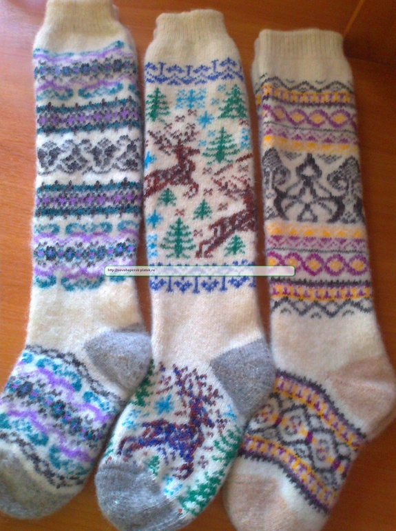 Носки пуховые. Простая вязка (детск. - 275р, взр. 400р) и ажурные (550р).