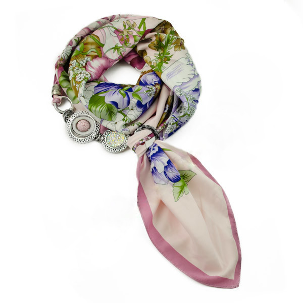 № 702. Шелковый шарф с украшением: бледно-розовый