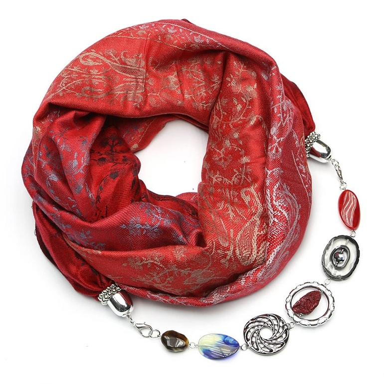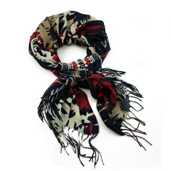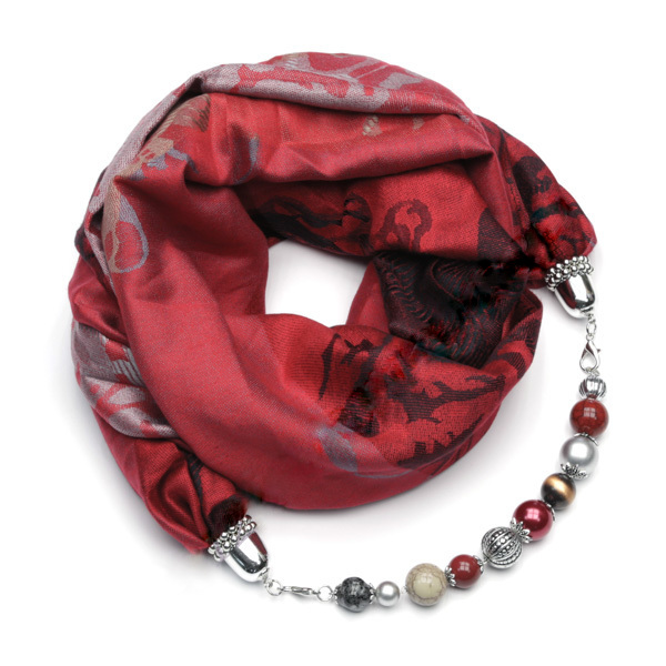№ 107 Кашемировый шарф с бусами: темно-красный