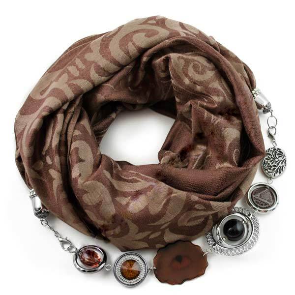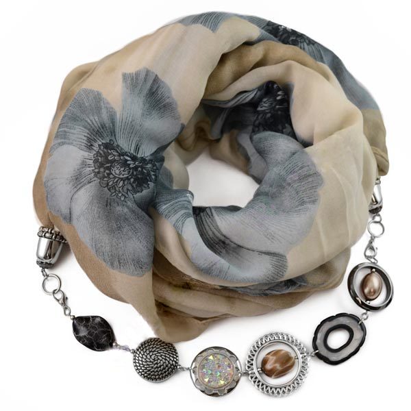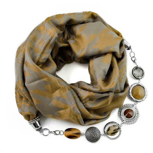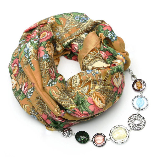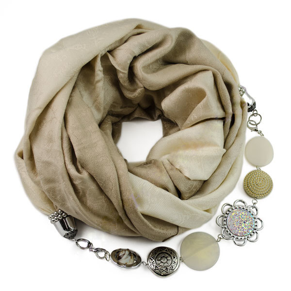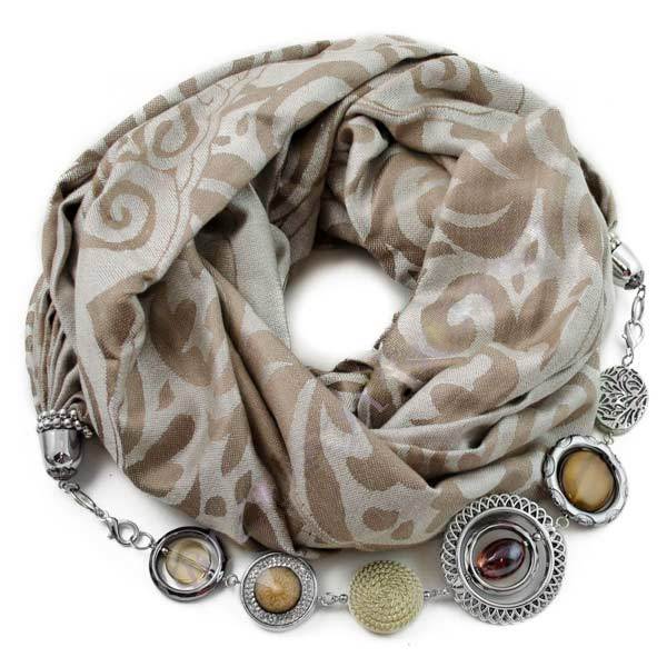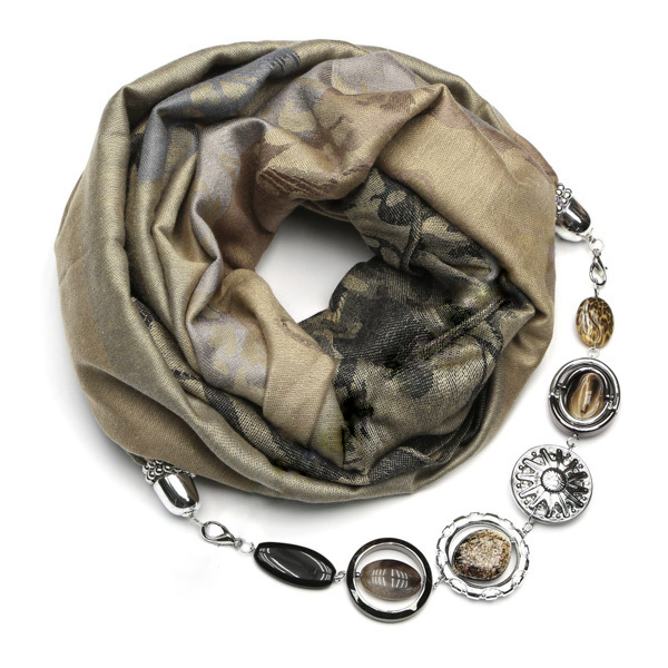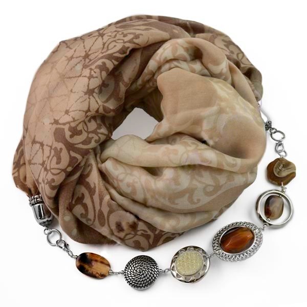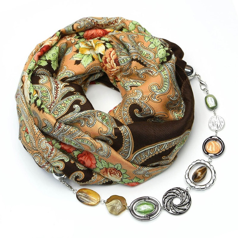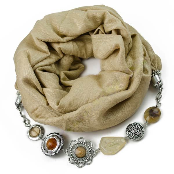 № 602. Шелковый шарф с украшением: бежево-коричневый