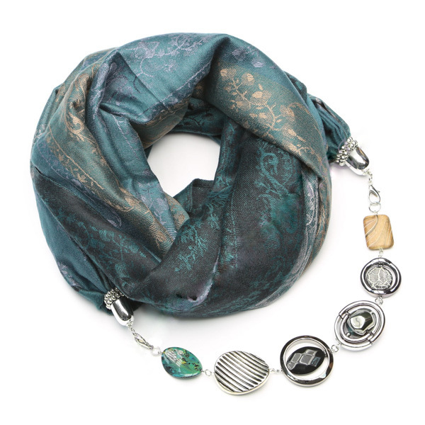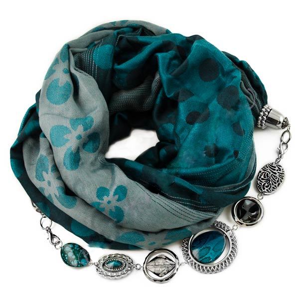 № 706. Шелковый шарф с украшением: бирюзовый