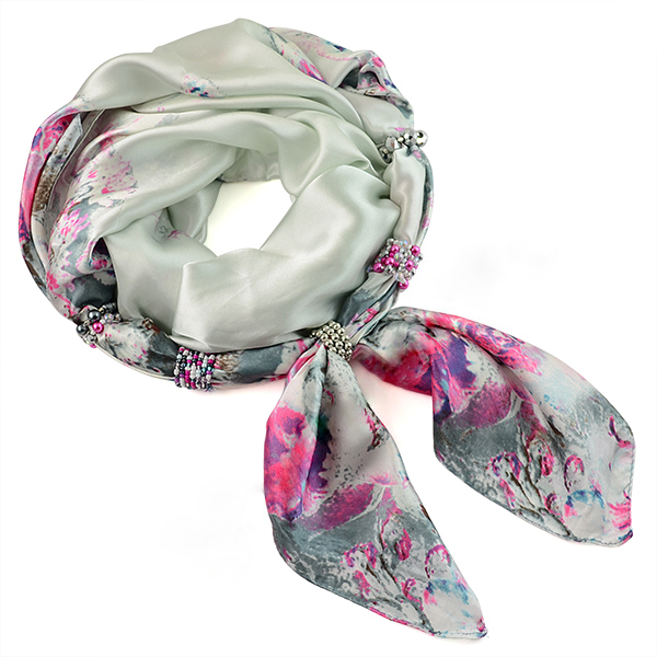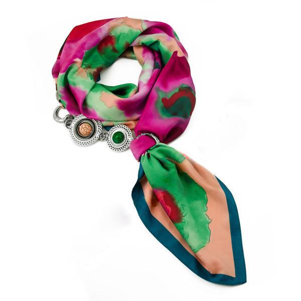 № 708. Шелковый шарф с украшением: зелено-розовый