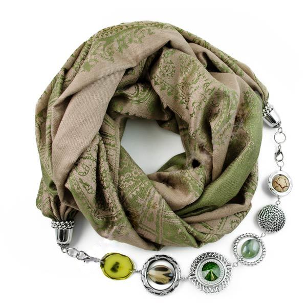 № 31. Кашемировый шарф-ожерелье: болотный цвет