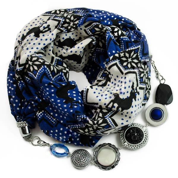 № 14 Кашемировый шарф-ожерелье: синий с оленями
