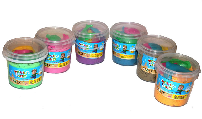 Кинетический песок в ведерке с формочками оптом - 0.5 кг + 4 формочки для лепки
