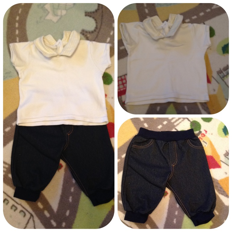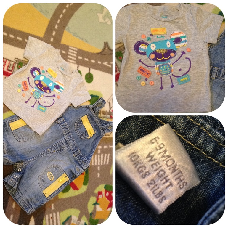 10 ) джинсовый комбинезон mothercare - не такой яркий как на фото. Минус виден на фото 250 руб