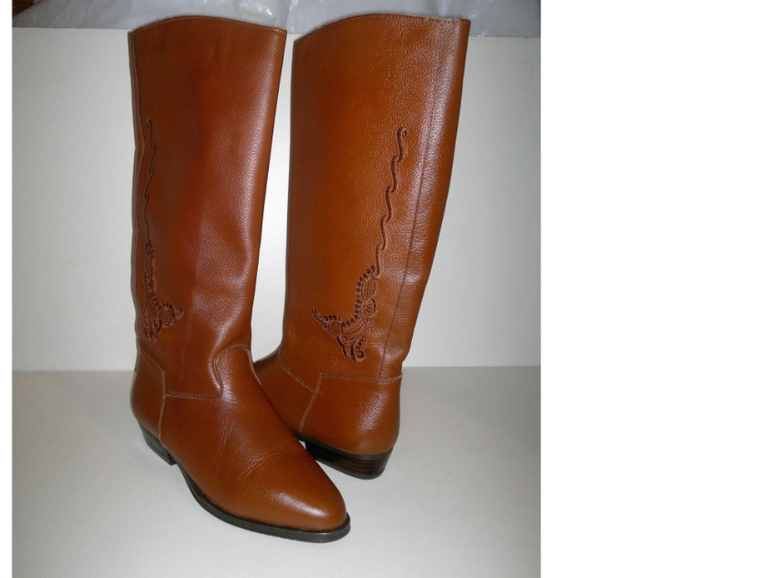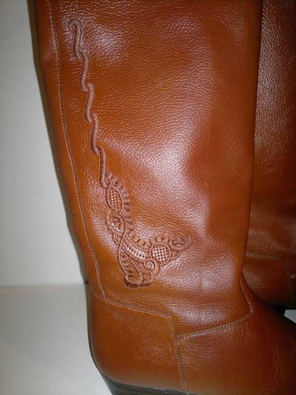 Сапоги сбоку украшены узором в виде вышивки,Сапожки без молнии