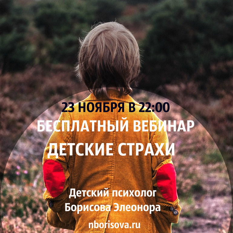 Присоединяйтесь к бесплатному вебинару. Мы поговорим о детских страхах, какие они бывают и как родители могут помочь ребенку.