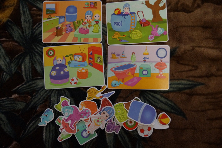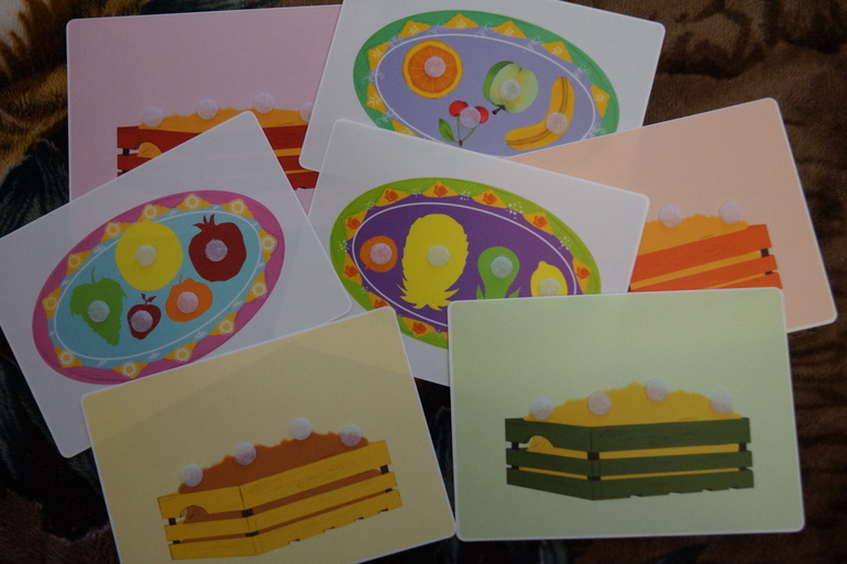Итак, что же внутри....а наполнение зависит от тематики! Но неизменно в каждом комплекте есть большие карточки и маленькие детальки на липучках. Материал - матовый пластик. Кроме того, наборы комплектуются инструкцией, в которой прописан рекомендуемый план ознакомления малыша с новой темой, вопросы для беседы и кое-где даже встречаются стихотворения по теме))) Игры направлены на развитие логического мышления, восприятия формы и цвета, зрительной памяти; речевого общения и мелкой моторики рук.