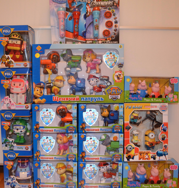 Всем привет) Предлагаю вашему вниманию Много разных игрушет - - робокар, свинка пеппа, миньоны, щенячик патруль, указки! ! с регионами работаю (почта от 200 р (они легкие только коробка большая)))