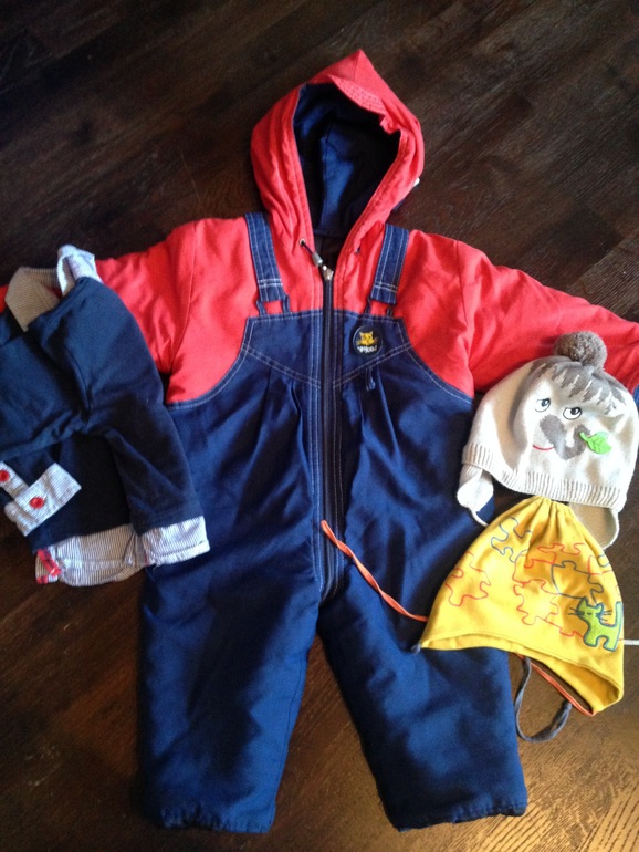 Комбинезон в идеале, были рукавички ( совершенно дурацкие и не нужные на данную погоду - соответственно давно где-то и остались )