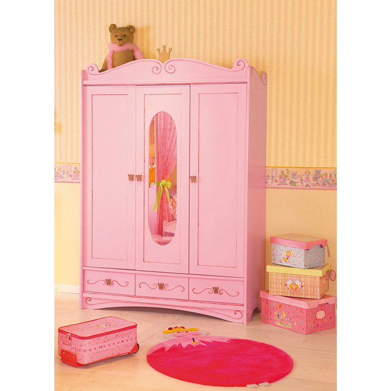 Самое большое отделение шкафа отведено для верхней одежды, над ним - место для головных уборов, а несколько вместительных полок помогут легко разместить белье и спальные принадлежности. Зеркало в центральной части шкафа позволит юной леди мерить наряды и любоваться собой.