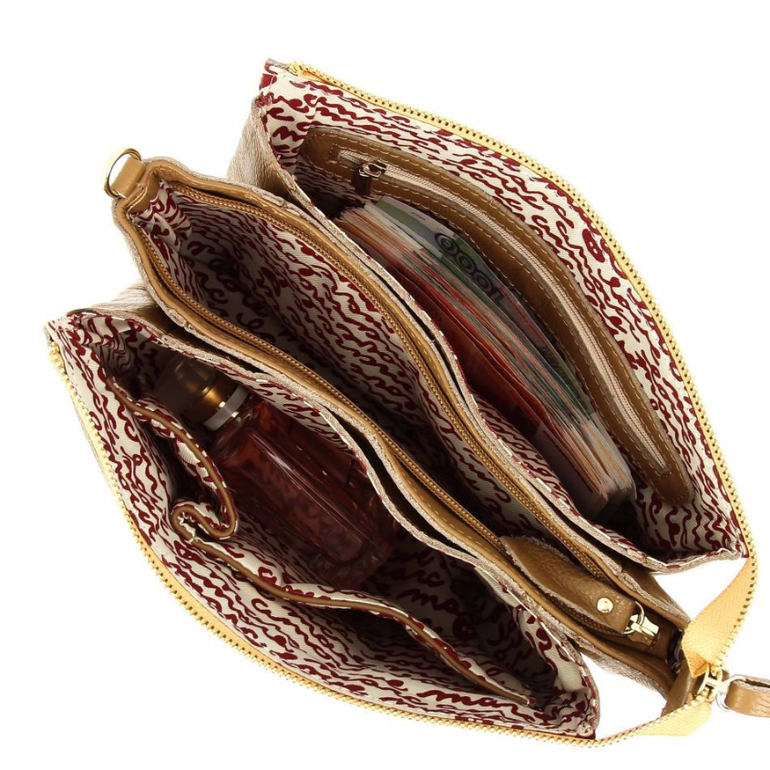 На боковых стенках расположены карманы на молнии и без для документов и мелочей.