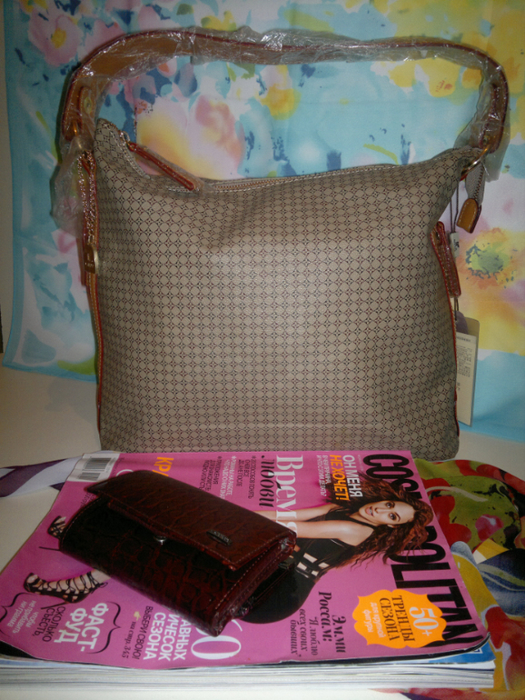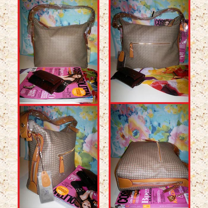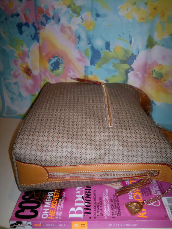 Цвет сумки: очень красивый бежево-серый (с логотипами) + ручка и отделка рыже-коньячного цвета