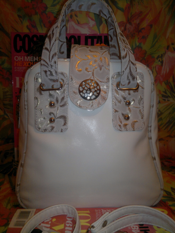 № 2 Сумка выполнена из искусственной кожи с красивыми метализированными вставками.