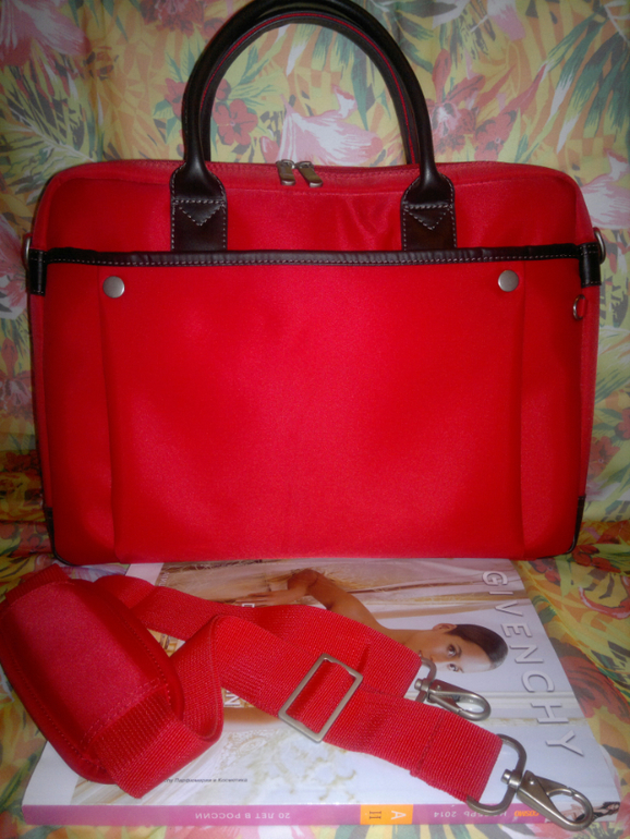 цвет сумки: красный + ручки и отделка из натуральной кожи цвета тёмный шоколад