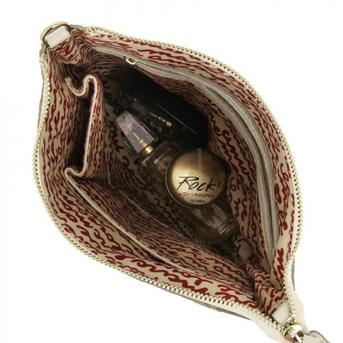 Внутри 3 отделения,среднее закрывается на молнию.Также имеются карманы на молнии и без для телефона,документов и мелочей.Сзади предусмотрен карман на молнии.Сумка закрывается на встречную молнию с 2-мя бегунками.В комплекте длинный ремень на плечо.На дне сумки расположены металлические ножки,предохраняющие её от повреждений.