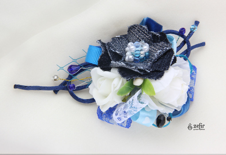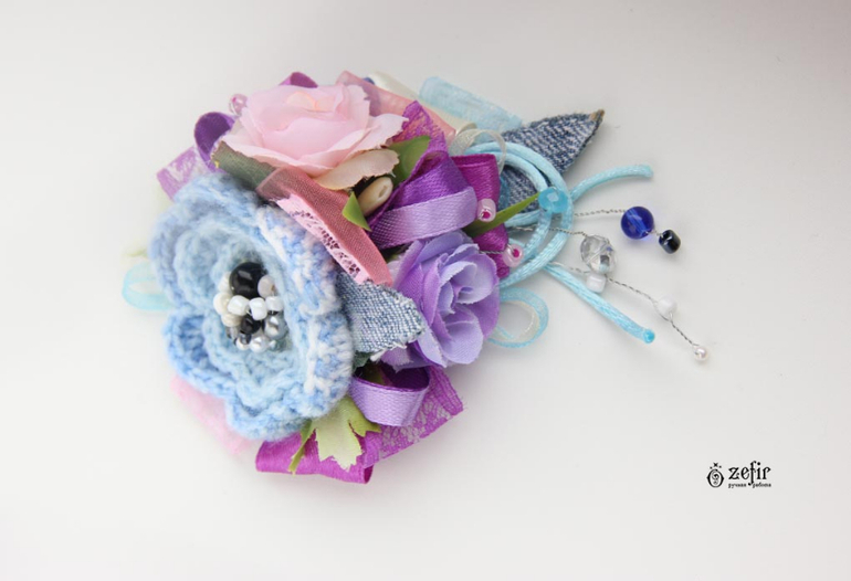 одиночные заколочка/резиночка/брошь с джинсой размер 7-8 см