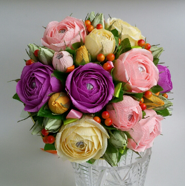 Букет с чаем и конфетами Золотая лилия , Марсианка ассорти . Диаметр 25 см . Цена 1100. Бесплатная доставка до любой станции метро .( Москва)