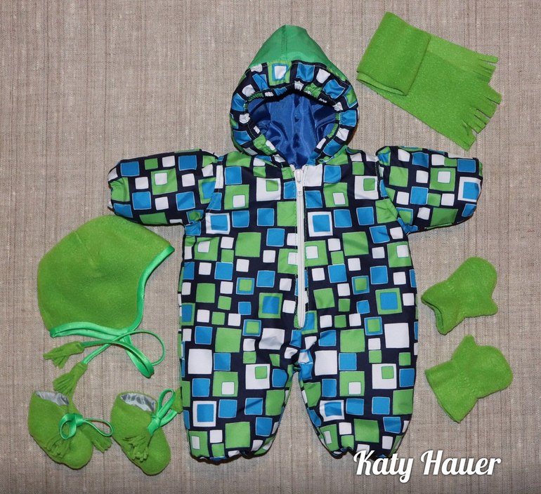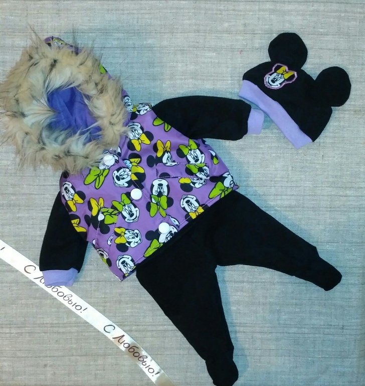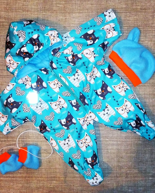 зимний комбинезон + велюровая шапочка, 1100 рублей.