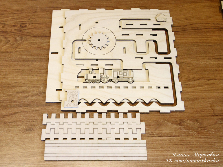 Сторона с паровозом - 700р (детали показаны не все). В собранном виде эту сторону можно посмотреть в моем дневнике в теме "Бизикуб". Переработан паровоз - мелкие детали устранены, собирается из 3 больших деталей на стяжках.