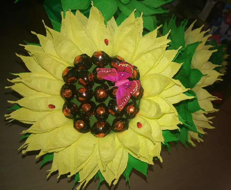 Букет из конфет "подсолнух" в наличии 3 шт с бабочками