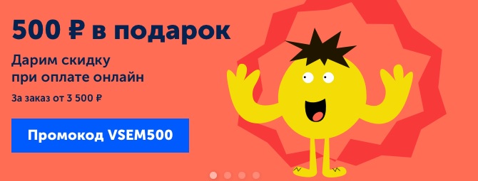С 26 ноября опять действует промокод на 500 баллов при заказе и оплате онлайн от 3500 руб - промокод VSEM500.