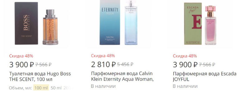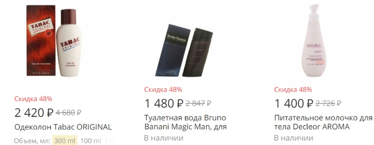 Вот немного цен для примера. Смотрите подборку со скидками по парфюмерии и косметике