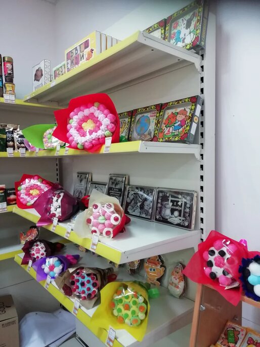 к 1 му сентября увидела красивые ,оригинальные букеты из зефира и Покровские пряники ,так же в магазине есть белёвские сладости(натуральный мармелад, пастила и самый разный зефир).Букеты от 500 до 1000р, разные по упаковке и размерам.